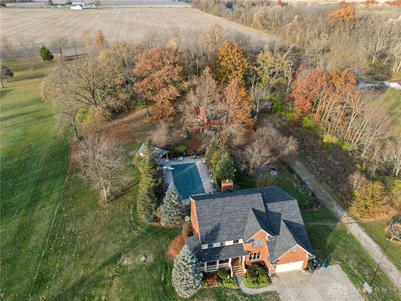 Custom two-story brick home offering 4,011 Sq Ft of refined living space on 5 private acres. Featuring 5 bedrooms and 6.5 bathrooms, this property blends luxury, comfort, and true indoor outdoor living. The primary suite serves as a private retreat with a spacious en-suite bath and an oversized walk-in shower. All additional bedrooms upstairs have attached bathrooms, offering exceptional comfort and privacy for family and guests. The finished basement extends the home’s entertainment space with a plumbed bar, dedicated gym, recreation room, and direct walk-out access to the pool. Outside, enjoy resort-style amenities, including a heated 20x40 in-ground pool and a fully functional pool house complete with its own bathroom and ample storage—perfect for summer entertaining. The property also includes a 30x50 pole barn with electric and water, ideal for equipment, hobbies, or future customization. Recent mechanical upgrades—a brand-new furnace, new air conditioning system, and two water heaters—ensure comfort and efficiency year-round. Beautifully constructed with timeless brickwork and surrounded by mature trees and open acreage, this property offers the perfect blend of privacy, functionality, and luxury. From its thoughtful upgrades to its impressive indoor–outdoor amenities, this home provides an exceptional opportunity to experience high-end living in a peaceful setting.
