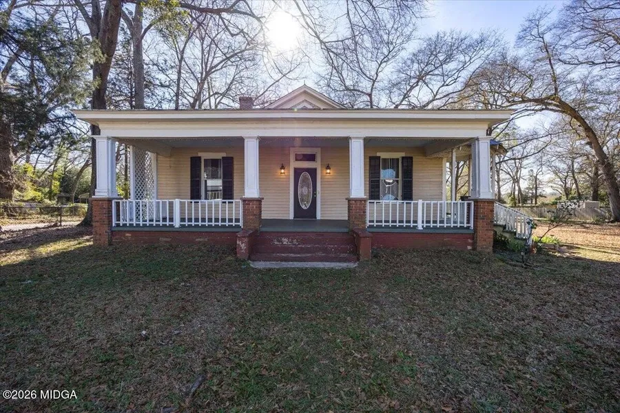 Welcome to your new home at 285 E Main Street in the quiet town of Forsyth Georgia. Just half a mile from downtown's shops, dining, and schools, this property offers the perfect blend of small town charm and everyday convenience. Set on a spacious 1-acre lot, now expanded to include Lots 6, 7, and the lot behind the home, the grounds are shaded by mature pecan trees and filled with character at every turn. A large wraparound front porch welcomes you in, accented by skylights and perfect for morning coffee or evening conversations. Inside, 12 foot ceilings, massive windows, and original hardwood floors preserve the soul of the home, while modern updates provide peace of mind, including updated electrical and plumbing, all the way down to the sewer line. The kitchen features butcher block countertops, refrigerator, convection oven, dish washer, and don't forget the walk in pantry through the hallway. Updated LVP flooring in the bedrooms adds durability and comfort. The living room flows effortlessly to the back porch, where string lights create a warm, inviting atmosphere for entertaining or slowing down at the end of the day. Out back, you'll find a 23x21 workshop on a concrete slab, a fire pit, and a charming cottage style brick garden edging alongside the home, using reclaimed bricks and gravel, surrounded by a variety of established plants. A metal roof, chain link fencing across the front, and remaining paint stored for future touch ups in case needed. This is more than a house, it's home - a place where history, craftsmanship, and new memories are brought together in one of Forsyth's most peaceful settings. Quiet, timeless, and full of heart, this home is ready for its next chapter. The only thing it's missing is you.