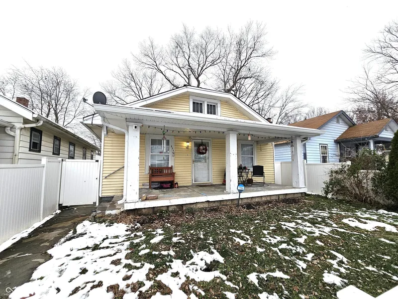 Located in an up-and-coming area, just beyond White River, where the streets are lined with sidewalks and evidence of recent neighborhood renovations are all around, this thoughtfully updated home is surrounded by the privacy of a white vinyl fence and complimented with a welcoming covered front porch. As you open the front door, you're invited in by the openness of the living room and the filtered sunlight streaming in through the updated windows. The rich plank floors bring a warmth to the home as they flow throughout the living room into the dining room, offering flexibility for making the space cozy for everyday use or combining the two areas for larger gatherings. Just beyond the dining room, the kitchen has been transformed with an updated layout, allowing space for a kitchen table or island that's ideal for having casual meals or drinking morning coffee. The bonus room is just off the kitchen and is perfect as a home office or playroom since it extends directly to the backyard. The bedrooms, located off the main living space, are each generously sized and also includes the same beautiful plank flooring making the home flow seamlessly throughout. The bathroom has been completely updated with tile flooring, a new vanity, tub and shower surround. The in-wall storage provides an area for all the extras without taking up precious floor space! Renovations completed between late 2023 and early 2024 include updated lighting, new subflooring, reinforced floor joists, all new plumbing and new water heater. The sewer line was replaced in 2018, and the oversized detached garage now has a concrete slab (previously gravel) and newly installed electrical service, making it ideal for the perfect workshop. With its spacious layout, thoughtful updates, and location in a neighborhood poised for continued growth, this home offers the opportunity to settle into a space that blends comfort, functionality, and future potential.