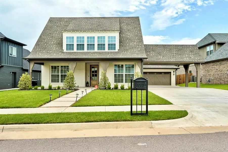 Step into elegance with this stunning McGregor Home, nestled in the sought-after Stone Hill at Iron Horse Ranch. Boasting 4 spacious bedrooms, 3.5 bathrooms, and a dedicated home office, this home is rich with exquisite finishes and one-of-a-kind architectural details that truly set it apart. From the elegant arched kitchen entryway, extensive molding, marble countertops, and a designer backsplash, every corner has been thoughtfully crafted. The open-concept kitchen features a large center island, custom china hutch, and an adjacent dining space perfect for entertaining. A walk-in pantry is equipped with a custom appliance counter and ample shelving to meet all your storage and culinary needs. Three bedrooms are conveniently located downstairs, along with the office, while upstairs you’ll find a massive bonus room, the fourth bedroom, and a full bath—ideal for guests or a private retreat. The cathedral ceiling in the living room extends seamlessly onto the spacious covered patio, creating a grand indoor-outdoor living experience. Wood beam accents add warmth and character throughout the home. Unwind in the luxurious primary suite, featuring a spa-inspired bathroom, an expansive walk-in closet with direct access to the laundry room, complete with a built-in desk and mud bench. The home also includes a three-car tandem garage, offering generous storage and functionality. Located in a vibrant and growing community, Phase 2 of Stone Hill will introduce even more amenities, including additional walking trails, greenbelt space, and a community pool. With quick access to I-35 and the Covell corridor, ShowBiz Theater, shopping, restaurants, and the Golf Club of Edmond, this location is second to none. Don’t miss your chance to own this show-stopping home; so schedule your private tour today!