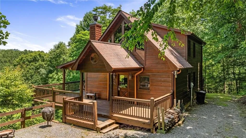 If you have "High Expectations", then this is the mountain getaway for you! You will be wowed by the magnificent long-range and close mountain views from multiple spots throughout. Featuring three levels with a bedroom and bath on each, along with loft living space and basement den/game room, this is the perfect layout for everyone to have their own space yet still be together. The spacious great room has a floor to ceiling custom stone, wood-burning fireplace, dining area, and kitchen with island seating and plenty of room for making culinary creations. The upstairs bedroom has its own private deck plus a soaking tub in the en suite bath. The lower floor features more lounging space perfect for movie watching, a pool table, foosball, and deck with hot tub to enjoy the magical views while you relax. Enjoy the babble of a small brook that runs along one side of the property. Finished with cozy wood throughout, rustic furnishings, and sold turn-key, you are ready for your private getaway or for use as an income-generating vacation rental. Located in the prestigious Mountain High subdivision with paved roads and underground utilities, you are in the middle of hiking, shopping, sightseeing, and more plus an easy drive to bustling Downtown Blue Ridge or Murphy, NC! Come see the home that will meet your "High Expectations" today!