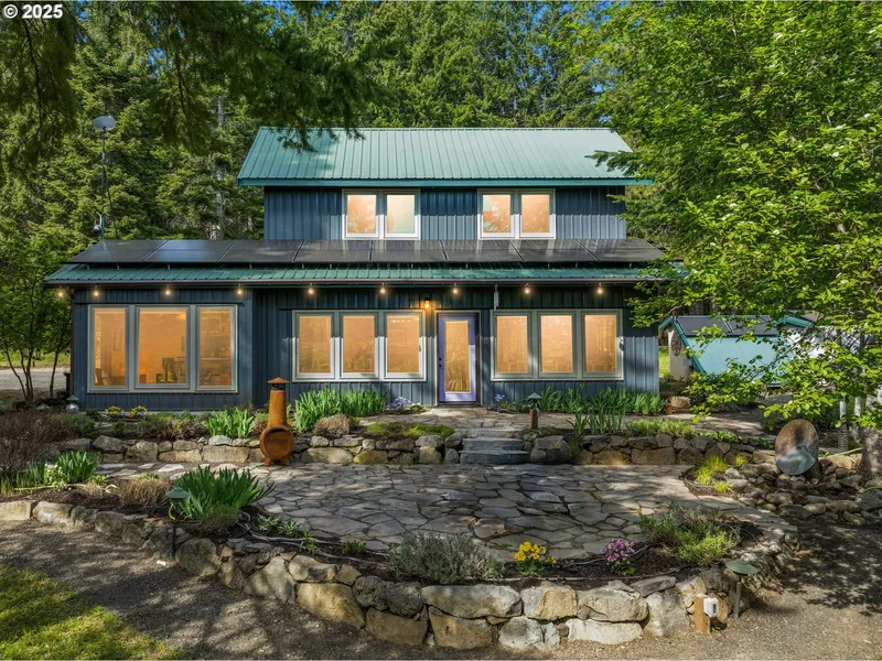 Nature meets modern green design at 961 Snowden Rd in White Salmon. This 20-acre parcel offers alpine meadows, evergreen forest, 180-degree views of nighttime skies, and proximity to hiking, biking, world-class wind and river sports, fishing, and skiing. Great food, breweries and wineries, entertainment, shopping, and excellent services and hospitals are just 20-30 minutes away in White Salmon and Hood River. 961 Snowden includes a custom-built 2-story, 2-bedroom, 2-bath primary residence; a separate finished 2-room, 1-bath studio with an attached workshop; a 24x30 detached garage; multiple finished outbuildings for generous storage; a pump house with 2 two pumps that draw from the on-property 175 ft well; and a custom-built solar greenhouse (close to the primary residence for easy winter access) for year-round hydroponic and/or permaculture growing. The primary home features exposed tim...