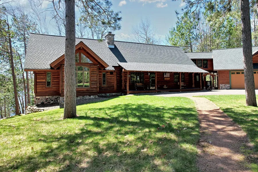 This executive hand-scribed log lodge and timber-frame home provides expansive lake views across the valley and 60 acre Lake of the Hills. You will own 400 feet of secluded frontage. It is bordered by Vilas County Forest, just minutes from Eagle River. It is private; an ideal location for hunting, fishing, snowmobiling, outdoor winter sports; perfect for family gatherings or executive retreat. Miles of county trails abut the private property. This home includes over 20 rooms ideally suited for family retreats, or vacation rental. A fieldstone fireplace allows for cozy evenings; cook a firepit dinner next to the screened gazebo. There are multiple decks, an attached "screened treehouse" and a covered bridge leads to the apartment above the 3 car garage. Highspeed internet is in place. The Northwoods feel of the home was highlighted and featured in a 2013 issue of a national magazine. A li...