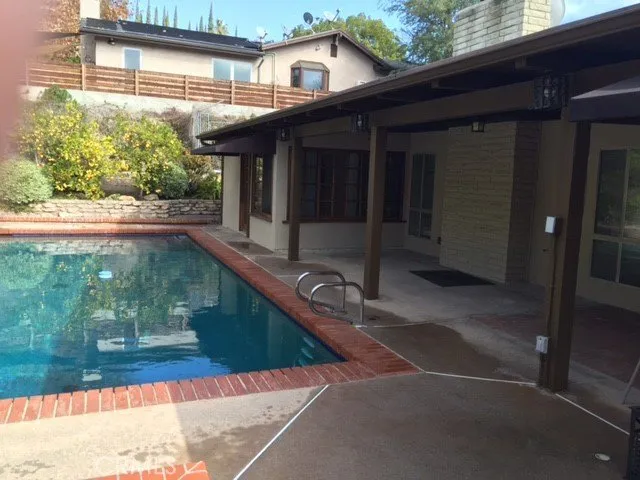 Rare opportunity to lease a home in highly desired Calabasas family neighborhood. Tile and hardwood flooring throughout, Entertainers yard, complete with swimmers' pool, fire pit and built in BBQ. Large woodburning fireplace in living room. Las Virgenes School District. Wet bar in den off of kitchen. 3 bedrooms on one side of house and master suite with large walk-in closet on the other. Study or private office upstairs complete with bathroom. 2 car attached garage and lovely atrium.