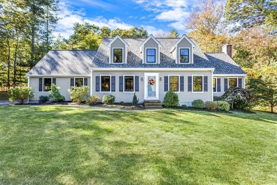 Welcome to a truly impressive Cape-style home offering over 3,000 sq. ft. of finished space, multiple upgrades & it's set on a serene 2.76-acre private lot w/ easy access to the Rail Trail. The heart of the home is the lrg, well-appointed eat-in kitchen, featuring rich cherry flooring, a central island, & elegant leathered granite counters. Entertaining is effortless w/ a front-to-back FR that includes a wood-burning FP & beamed ceiling, a huge formal DR, & an additional cozy LR. Laundry room & half bath complete the 1st flr. The 2nd flr hosts 4 spacious bdrms including the primary ste w/ walk-in closet & private bath. Finished LL recently updated w/ new carpet and fresh paint offering endless possibilities. Outside, a large composite deck provides the perfect spot to enjoy the private, wooded surroundings. Major updates: Furnace, A/C & mini split (25), Windows (21-22), Roof (20), Deck ...
