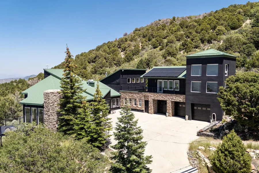 Prepare to be amazed! Three elements of good design are the use of space, light and air, all of which are on display in this beautiful home called the ''Aerie''. Suspended high above the city on the rim of Cedar Highlands, with crystal clear air and 360 degree views. This home is more unique and modern, than other homes in the area. Every angle of its design is a masterpiece of art, with a panoramic view from any window. When you walk into the custom front door, you are surrounded by large windows, through which the view and light pour in. Step out to the surrounding deck, to gaze upon the city and distant mountain areas. Nestled up against BLM forest land you can observe nature while in your hot tub as deer slowly walk by and squirrel run on the rocks, in the natural landscaping including extensive beds of lavender that surround the property. The home has solar panels installed that are...