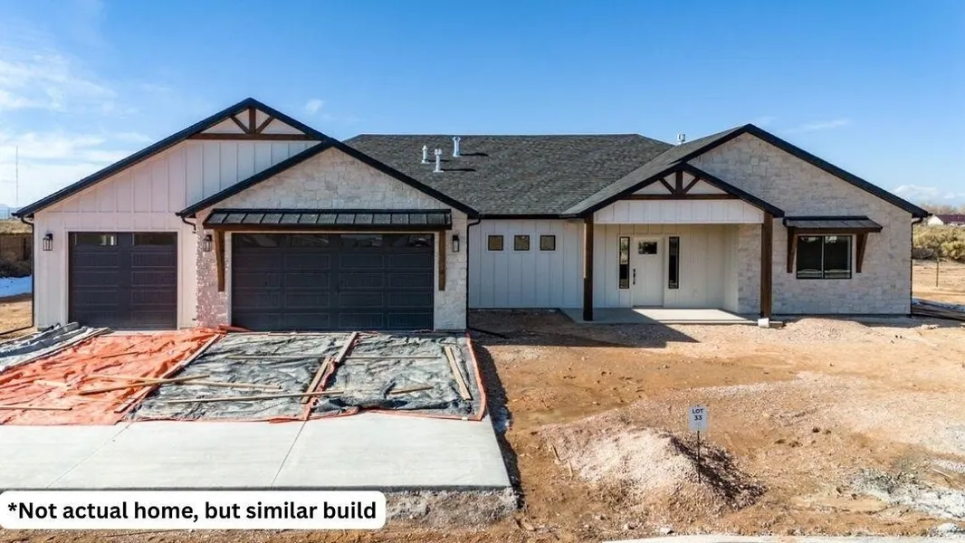 Nestled in Cedar City's prestigious Saddleback Ridge, this new construction home boasts stunning views amidst rolling, treed hills. This comfortable single-level home is 4 bedrooms and 2.5 bath with a 3-car garage. The open concept modern design mixes in Tuscan inspired touches to give it a comfortable, classic feel. The gourmet kitchen features custom cabinets, a hidden pantry, and an entertainer's island which flows nicely into an offset dining room. The fireplace and custom built-in cabinets give the living room a cozy touch. The master suite feels luxurious with beautiful tile work, a soaker tub, double sinks, and a huge closet. Enjoy outdoor living on the covered front AND back patios, perfect for relaxing and soaking in the views. Estimated Completion is October 2025.