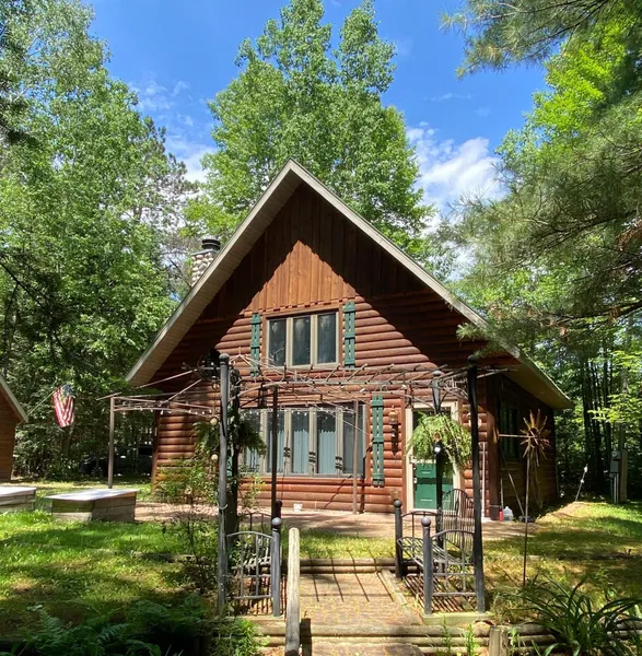 Private, serene, and natural describe this picturesque riverfront property. As you arrive at the property you'll feel in harmony with nature as you notice the mature forest of pines and hardwoods surrounding the quaint log-sided cottage and the matching insulated garage and "executive" wood shed. Follow the path past the brick paved patio that leads to a robust, well-maintained, lighted footbridge that eases you down a gradual slope through the forest to 440 feet of shoreline on the crystal-clear waters of Swamp Creek. Don't let the name fool you, it's absolutely gorgeous and perfect for canoeing, kayaking, tubing, and paddle boating. The custom cottage, built in 2007 is all you need to experience four seasons in the Northwoods with a main level bedroom, a loft that serves as a second bedroom, cozy wood-burning fireplace, custom cabinets, lots of clever built-in storage, a forced air furnace, and central A/C. Look no further for your perfect little piece of Northwoods paradise!