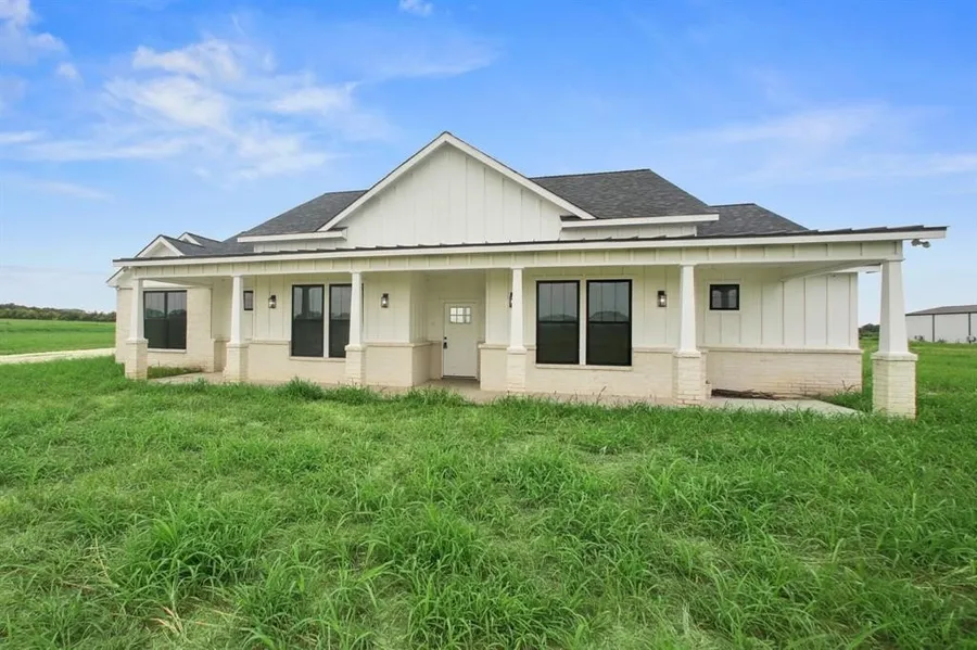 This brand-new, custom ranch-style home offers 3 bedrooms, an office, and a versatile flex room on 3.1 acres, with up to 6 additional acres available for purchase. Designed with thoughtful details throughout, the home features a spacious primary suite with a walk-in closet that includes washer and dryer hookups, along with a separate full laundry room on the opposite side of the house. The open layout was built with convenience in mind, including intentional outlet placement and flexible spaces to suit any lifestyle. Enjoy the expansive covered back patio for outdoor living and entertaining, all while surrounded by the beauty and privacy of country living in a timeless ranch-style elevation.