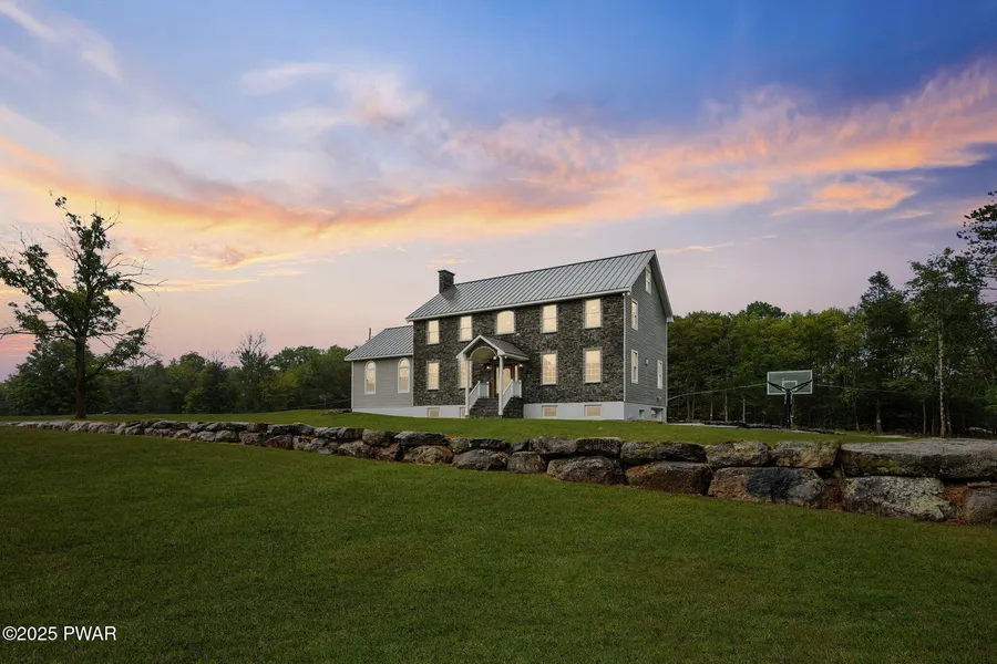 Breathtaking Custom-Built Colonial 4 bedroom, 3 bathroom Home on 2.49 Acres - True Luxury & Craftsmanship. This extraordinary 4-bedroom, 3-bath center-hall Colonial, set on a flat and private 2.49-acre parcel, is a masterclass in design, quality, and detail. Ideally located with easy access to Lake Ariel, Honesdale, and Lake Wallenpaupack, this home blends timeless elegance with modern luxury. The exterior features stone and vinyl siding with a striking custom stone facade, metal roof, concrete walkways, and a covered back porch overlooking peaceful surroundings. Inside, a dramatic vaulted foyer opens to a formal dining room and a spectacular living room with floor-to-ceiling stonework and an impressive propane fireplace. The massive chef's kitchen offers butcher block and concrete countertops, a massive island, farmhouse sink, six-burner propane oven, premium stainless steel appliances, and custom cabinetry, with a layout that flows seamlessly to the expansive covered porch--perfect for entertaining. Heat Pump units throughout the home provide heat and A/C for comfort year round comfort! Upstairs, all four bedrooms have hardwood flooring & awesome views from each window! The primary suite features a huge walk-in closet, and private spa like retreat bathroom, featuring a stunning stone-arched entrance to the walk-in shower with a pebble floor and wood-look tile walls, a freestanding soaking tub, dual concrete vanities, and custom cabinetry--every element designed for both luxury and relaxation. A convenient second-floor laundry and premium finishes are found throughout. The oversized heated garage with 12-foot doors is ideal for hobbies or storage. The walk-out lower level opens to a paved parking area and basketball court and offers space for future living areas. A detached small horse barn and multiple access points to both Lake Ariel Highway and Stock Farm Road complete this immaculate, move-in ready home built to the highest standards! Like a Brand New Home!