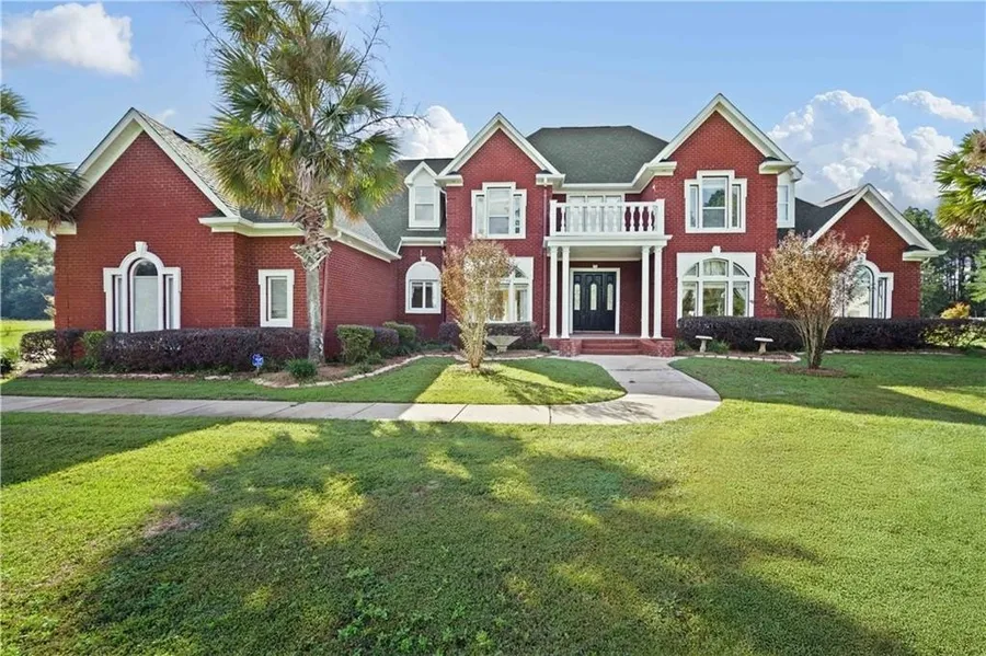 PRICE REDUCTION! OWNER FINANCING AVAILABLE! Welcome to Your Dream Estate! Discover luxurious living in the exclusive Magnolia Downs subdivision of West Mobile! This stunning property features exquisite landscaping that beautifully frames the impressive 4/5 Bedroom-3.5 Bath, 5,000 sq. ft. brick home. As you step inside, a spacious foyer welcomes you with soaring ceilings and breathtaking floor-to-ceiling windows, flooding the space with natural light and offering picturesque views of the awesome backyard. The interior boasts rich hardwood and marble floorings, decorative ceiling molding and accent, imported crystal chandeliers, gorgeous tiered ceilings, and detailed crown molding, all reflecting impeccable craftsmanship. The exceptional kitchen is a chef’s dream equipped with a new stainless-steel cooktop, wine cooler, built-ins, a walk-in pantry, a kitchen island with breakfast bar, and a cozy informal breakfast area—all complemented by abundant custom cabinetry and gorgeous granite countertops. The main level also features a huge family room with a grand fireplace, and the master suite offers an adjoining office/nursery/study, providing versatility for your needs. The luxurious master bath is a true retreat, showcasing beautiful marble, a spacious walk-in double shower, a separate whirlpool jetted tub, and an expansive walk-in closet. Upstairs are two generously sized bedrooms, and a hall bath, a versatile game/media/exercise room (which could easily serve as a fifth bedroom). Adjacent is the family theater room perfect for movie nights. A lovely balcony overlooks the living room, while convenient walk-in attic storage adds practicality. The exterior continues to impress, featuring an expansive 20 x 18 covered porch with a built-in cooking area, perfect for entertaining, and overlooks a serene waterfall koi pond surrounded by lush landscaping, various fruit trees and a charming gazebo. The spacious lot offers ample room for a pool, tennis court, gardening, or family games, creating a true paradise for relaxation and enjoyment. A new roof was installed in May 2021. This custom built home is loaded with too many details to mention! Make your appointment today to see everything this fantastic property has to offer. Listing company makes no representation as to accuracy of square footage; buyer to verify all information deemed necessary. Seller is related to listing agent.