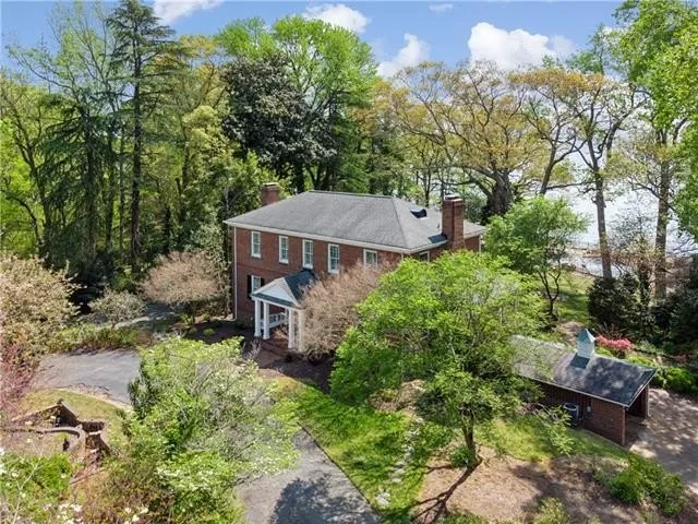 Welcome to Warwick Hall, a prominent James River estate on just under two private acres of waterfront sophistication. This classic Georgian greets you with stately brick columns, custom insignias and sweeping James River views in almost every room. Ornamental ceiling details and exquisite carpentry underscore the timeless elegance of this estate. The 1st floor is built to entertain, beginning in the chef’s eat-in kitchen with masonry fireplace and French doors spilling out to the patio. Nearby oversized living and dining areas offer something for every occasion with hardwood floors and wood shutters. The 1st floor primary suite offers generous river views and a spa-like experience. The staircase boasts custom millwork leading you upstairs to two bedrooms with river views and another primary suite with multiple closets, grand fireplace and abundant natural light. Warwick Hall offers an elevated outdoor experience of stunning grounds with oversized pool and poolhouse set at the edge of the James on over 200 feet of shoreline. Heading back to the main house reveals a full basement with river views, masonry fireplace, wet bar & full bathroom. Don’t miss the chance to own this true gem!