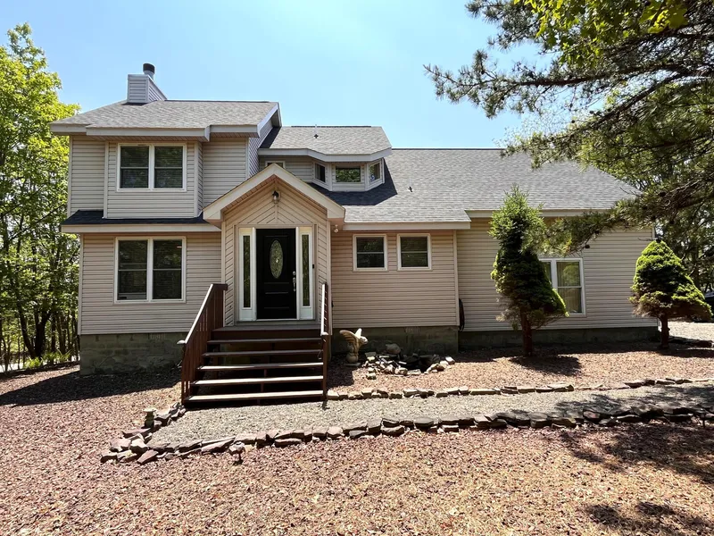 MOTIVATED SELLER! Gorgeous 3 bed/2.5 bath Contemporary style home w/ stunning, oversized living room & 2nd story family room on 1.01 acres in Indian Mountain Lakes! As you enter through the foyer, this beauty immediately impresses with the striking main living room w/ sleek wood plank laminate flooring & central fireplace! Upgraded programmable Dimplex convector baseboard heating throughout! The gourmet kitchen (remodeled in 2020 w/ new appliances) features CM Stone countertops & stainless steel appliances! Convenient first floor powder room! The primary suite showcases vaulted ceilings & a wall of windows facing towards the sunrise! The 2nd story family room is perfect as an at-home office, hobby room, exercise room, or extra sleeping space! Plenty of storage with the attached 2 car garage! Unwind on the rear tiered deck w/ gazebo- ample space for relaxing and spending time with family & friends! Being sold partially furnished! Fenced-in yard is wonderful for pets! Upgrades galore - new roof 2019, new ceiling fans/lights 2018, new flooring 2017, new water heater 2018, new water pressure tank 2023, and more! Be sure to enjoy Indian Mountain Lakes pools, beaches, & more! Great commuter location to PA-476 & I-80! See today!