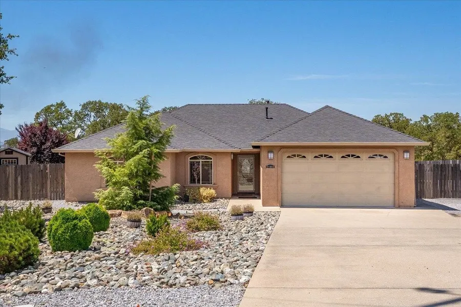 Updated and Very Well Maintained home that shows like new. Spacious. light and bright open floor plan featuring vaulted ceilings. The kitchen features lots of cabinets, updated appliances, slab granite countertops with a breakfast bar and LVP flooring. The dining area has a sliding glass door for direct access to the covered patio for outdoor dining and relaxation. The primary bedroom suite has a walk in closet and a private bath with double vanities and a spacious stall shower. The attached 2 car garage is finished with drywall. Front and rear yards have low maintenance landscaping and you can enjoy cool fall evenings by the fire pit feature in the fenced backyard. Plus a Generator for use during power outages. Add to this all of the amenities offered in the gated community of Lake California for the complete package.