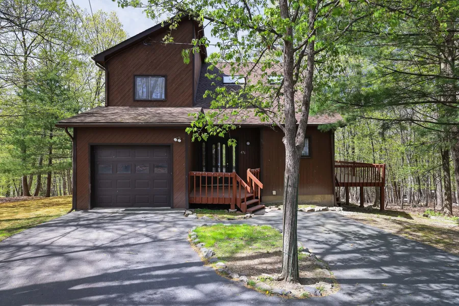The true gem of this property is the expansive outdoor deck, where you can savor morning coffee or host summer barbecues surrounded by nature's tranquility. The wooded lot offers privacy and a front-row seat to the beauty of the Poconos.