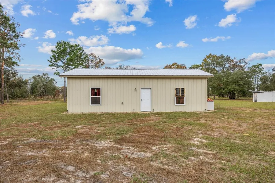 Under contract-accepting backup offers. Welcome to your slice of paradise in Williston, Florida! Nestled on a sprawling 10-acre parcel, this barndominium style home built in 2023 offers a unique blend of rustic charm and modern comfort while still providing the conveniences of everyday living. Perfectly situated with easy access to both the World Equestrian Center in Ocala and the University of Florida in Gainesville, this location feels peaceful and private yet far from remote. Daily life is made effortless with private trash pickup, all major deliveries brought right to your door, high speed internet readily available, and a new 7,000 watt back-up generator providing peace of mind. Inside, the barndominium features a versatile, sun-filled living area with an open floor plan that seamlessly integrates the kitchen, dining, living, and sleeping spaces. High ceilings and stylish finishes e...