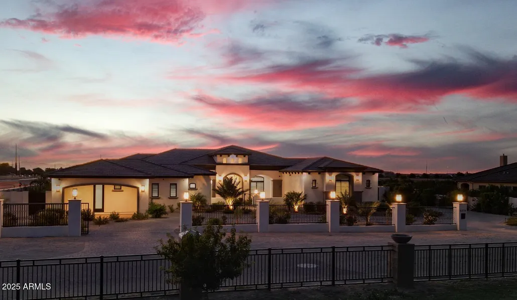 Beautiful Starwood Custom home on a 1+ acre corner lot featuring a large main house, 2 bedroom detached guest quarters, 18' grand entrance with custom iron door in main house, dynamic volume ceilings, Italian ceramic tile flooring, Calcutta quartz kitchen counters, waterfall island, personal 4 person sauna, horse property, mountain views and no HOA. The 16'x10' multi-sliding door incorporates the exterior into entertaining space. Andersen 100 Series windows, security system with cameras, 8 chandeliers, Nora recessed lighting, Minka Aire oversized ceiling fans and plantation shutters. Manicured landscaping with synthetic grass, gated circular drive, pavers, travertine, sport court and RV gate/parking. This is a beautiful property in a great location.