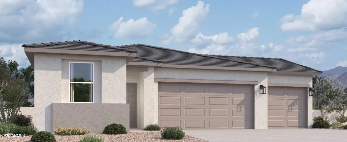 Welcome to the stunning Poppy floorplan with a modern desert exterior. This spacious 2075 sqft home offers a 4-bedroom, 3-bathroom home, with a versatile den, perfect for a home office or more. The open-concept layout is enhanced by 9-foot ceilings and wood-look tile flooring in main areas. The heart of the home is the kitchen, featuring the Minimalist Collection with 42'' upper grey cabinets, hardware, backsplash, and white quartz counters. The kitchen comes fully equipped with all stainless steel appliances including 5 burner gas stove and refrigerator. A 4-panel center sliding door opens to a covered patio, ideal for outdoor living and dining. The 3-car garage provides ample space for your vehicles and storage. Also includes upgraded finishes, washer/dryer, and blinds throughout. Located in a peaceful neighborhood in Amarillo Creek, this house offers both comfort and style, making it the perfect home.
