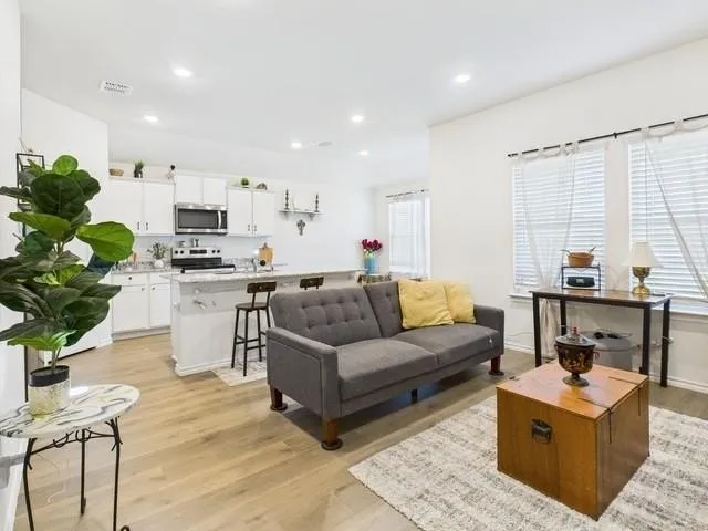 Beautifully designed, and the most competitively priced home in Corsicana Commons. This one is priced to sell. This single-story plan offers a thoughtful blend of comfort, functionality, and modern style with 2 bedrooms and 2 full bathrooms. The architecturally designed exterior features divided-light windows, a front-facing garage with decorative hardware, and a welcoming covered front porch leading to an insulated raised-panel fiberglass door. Inside, a foyer entry guides you into the open-concept layout where the island kitchen serves as the centerpiece. Enjoy 30” cabinets with hidden hinges, granite countertops, stainless-steel appliances, a built-in sink and dishwasher, and a large pantry that provides excellent storage. The living areas feature durable laminate wood plank flooring, with comfortable ½” carpet in the bedrooms. The spacious primary suite includes a well-appointed bath...