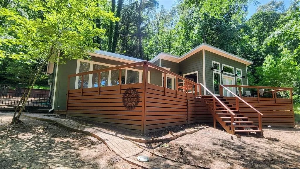 Great Fishing and a wonderful modern style home in the piney woods of east Texas. This home is great for entertaining with the large outside decks, enclosed boat house and pier. Location is close to Pine Dunes Golf Course and is in a gated community. Spend your days fishing the stocked spring fed lake for bass, crappie, catfish etc. The 2 bedrooms, 2 bath home has recently been updated with new appliances, cabinets, shelves, etc. There are gorgeous views of the lake from the wall of windows in the living and bedroom areas. Property includes a vacant lot next door so you could easily add on or build another home. Don't miss out on this amazing opportunity to own your dream lake home!