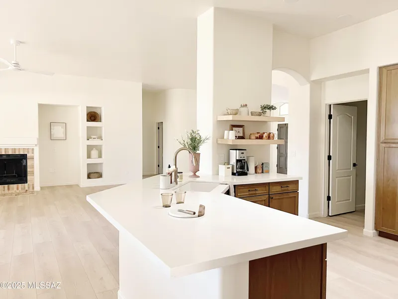Everything is new in this modern Mediterranean gem in beautiful Rancho Vistoso! This welcoming home has been recently renovated by a designer in a warm neutral palette with luxury materials. The new light & bright kitchen features two-tone semi-custom cabinets, stainless steel appliances (including a 36'' range and hidden Breville microwave), Pottery Barn floating shelves, Travertine Stars & Cross backsplash, and quartz countertops- opening to a spacious dining nook and great room featuring a tiled fireplace and built-in displays. Separate media room, formal dining room, and powder room make this home perfect for big families and/or entertaining. You must see this one in person to truly appreciate the beauty of the area!