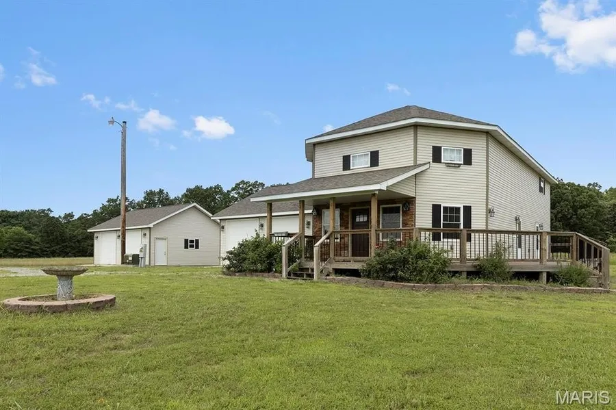 Welcome to this charming 3-bedroom, 3-bathroom home (could easily convert to 4 bedrooms!) on approximately 14 acres of serene countryside. Step inside to find 10-foot ceilings, an open-concept kitchen with an eat-at island, and a cozy gas fireplace on the wall. The home has vinyl plank flooring throughout. Relax on the composite wrap-around deck, take a dip in the above-ground pool, or unwind in the hot tub under a stylish pergola. There's a stocked pond and a garden area. 30x24 attached 2-car garage, plus a 30x24 detached garage with oversized doors, perfect for storing larger vehicles or equipment.