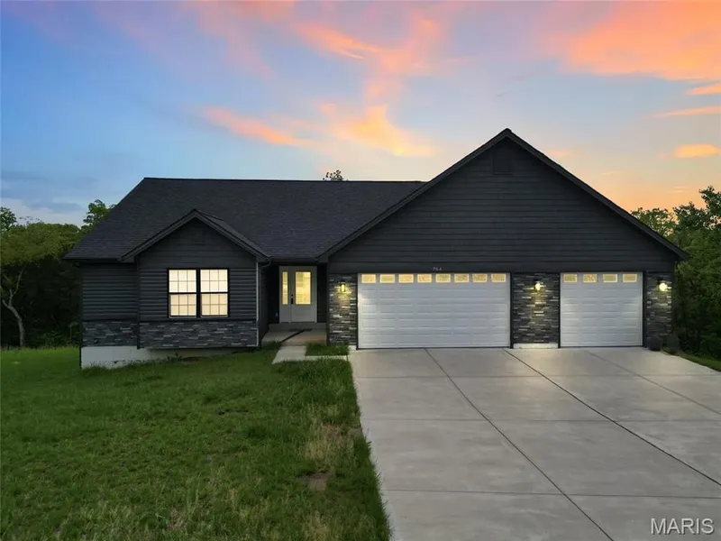 Built in 2022, this stunning home sits on a rare 1.8-acre lot in sought-after Clover Lake—offering privacy with a friendly subdivision feel. Enjoy walks to the community fishing lake or golf cart rides with neighbors. Features include 3 beds, 2 baths, a 3-car garage with extended driveway, and modern finishes throughout. The walk-out basement is framed, drywalled, and ready to finish with a 4th bedroom and full bath (rough-in plumbing included). Interior highlights: vaulted ceilings, granite countertops, LVP flooring, custom cabinets, tile showers, black stainless appliances, and black matte fixtures. The spacious primary suite boasts a double vanity and huge walk-in closet. Outside, relax on the composite deck with wrought iron railing and breathtaking sunset views, or entertain on the large concrete patio below.