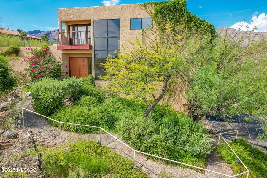 Discover this one-of-a-kind custom home designed to inspire, where striking architecture meets the beauty of the majestic Sonoran Desert. This unique three-level residence showcases dramatic floor-to-ceiling windows that frame panoramic views of the Catalina and Rincon Mountain Ranges. This property borders 118 Acres of pristine natural desert to the North, offering sweeping views unlike any other in the Foothills. Intentionally peaceful design concept w/ atrium sanctuary & lovely meditation garden. Potential for separate living quarters on lower level w/ office, bonus room, full bath & separate entrance. This is more than a home... it's a living experience shaped by nature, light & architectural vision. First time ever on the market! Wonderful location in Cimarron Foothills Estates