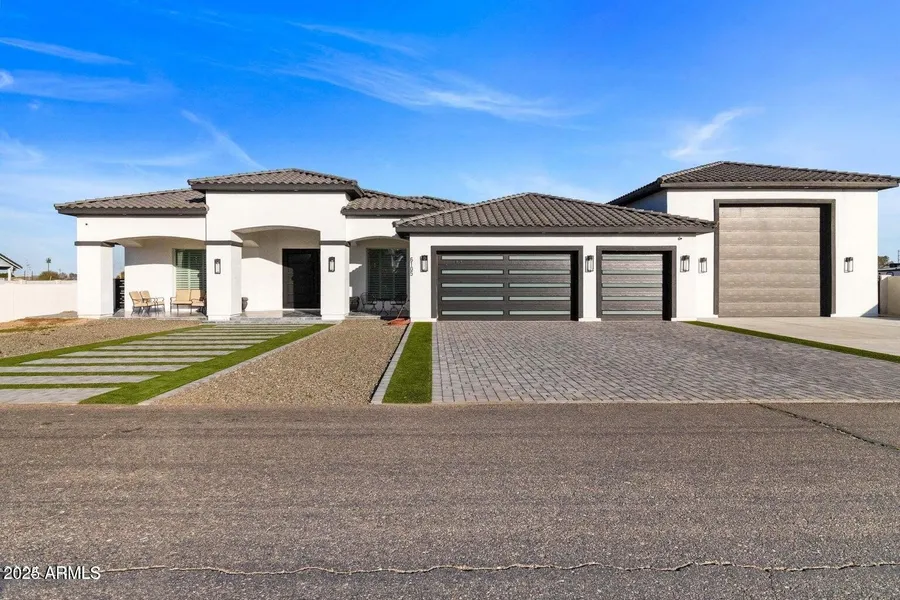 Welcome to this exquisite 1 Acre flood irrigation horse property NO HOA 6-bedroom, 4.5-bathroom residence, where modern elegance meets functional living. This property boasts a thoughtfully designed open floor plan that is perfect for both entertaining and everyday family life. features a gourmet kitchen with expansive Granite island as a focal point, Walk-in pantry, self-closing custom cabinetry flowing seamlessly into spacious living and dining areas, 3coffee bar / wet bar equipped with mini-fridge, ice maker and sink, ideal for gatherings and family moments. stainless steel appliances; microwave oven, gas range, build in side by side column refrigerator & freezer. main bedroom complete with a private morning bar, dual vanities, soaking tub, spacious walk-in shower and walk in closet mud area, 12ft ceilings in foyer, kitchen and living room area, gas fire place, 10ft H by 16ft L slider door! Front door is 9ft H by 6ft L, attached Casita 1bed/1 bath, laundry, pantry, separate entry, living room area, separate A/C unit separate tankless water heater, plantation shutters throughout the home. over size 3 car Garage with insulated doors, Attached Over size RV garage with insulated dual doors, home is build of Insulated Concrete Forms (ICFs) Sprayed foam throughout the home and Garage. Total Habitable area 4,318sq ft, garage 832sq ft, RV Garage 1,246sq ft, front porch 493 sq ft, rear patio 1,074 TOTAL SQFT under roof 7,963sq ft. This home is a must see, too many