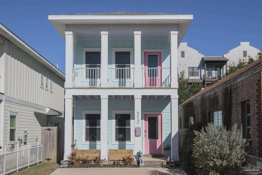 A bright and cozy modern retreat you will love calling home right in Pensacola’s beloved downtown! With construction completed in 2020, this 3-bed, 3-bath, one-owner home has been very well maintained and is just blocks from the beautiful new Bruce Beach and Maritime Park, as well as Ever’man Co-op Grocery and Palafox Street! Stroll downtown to enjoy the local restaurant scene, art, and culture, or relax at home on one of your four covered porches- each about 16’ long- two on the front of the house and two on the back. This home has the enviable feature of that additional 4th balcony off the rear upstairs bedroom, something that was omitted on most of the other new-builds in the area. When you enter this home, you’ll notice the gorgeous natural light let in by the large windows and feel right at home as you step in to your own personal sanctuary. The open-concept kitchen has quartz count...