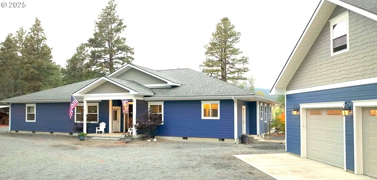 This custom home was built with superior materials by one of the most respected builders in the area! Situated on 6.54 private acres, the property is located at the end of a quiet road with stunning views of the Elkhorn Mountains. Single level living with 4 bedrooms, 4 bathrooms, plus office/den (3,469 sq ft). Interior of the home features hardwood cabinetry and floors, solid wood doors and other custom finishes throughout. Spacious open concept living includes a chef’s kitchen with oversized eating bar, dining area, and large living room with a Blaze King woodstove that can easily heat the home through the winter if desired. Primary suite boasts mountain views, direct covered patio access, ensuite bath with dual vanities, and walk-in shower. A dedicated home office with private entrance makes remote work or business office comfortable and convenient. The oversized garage accommodates 2 full-size trucks or SUV's with additional loft/attic storage. Enjoy the landscaped yard with fenced garden space, fruit trees, in-ground sprinklers and a tranquil water feature. Property is fully fenced for horses and includes a frost-free waterer. No HOA. Perfect access to outdoor recreation and adventure--ride horses or ATVs from your property onto public land for miles of trails. Country living meets refined comfort in this exceptional property and yet just a short drive to downtown Baker City! Be sure to view both videos for the full scope and beauty of this property.