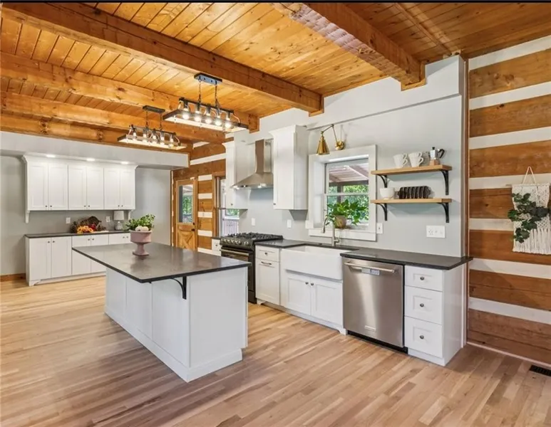Craftsman roots, elevated to a modern masterpiece! Nestled on 2.5 peaceful acres, this extraordinary residence showcases a head-to-toe designer transformation of a Heatherstone Luxury Log Home. Heatherstone Log Homes are known for handcrafted quality, modern engineering, and energy-efficient materials. This home has been fully modernized with an artist's touch. The floor plan was optimized, the kitchen was fully renovated, and all the bathrooms were completely redesigned, creating a bright, contemporary, open-concept interior that perfectly highlights the home’s original grand rustic details, like the massive two-story, raised-hearth stone fireplace and the rough-cut exposed log beams. From the moment you step onto the expansive covered front porch and walk through the modern, five-panel shaker-style front door, you’re greeted with warmth, light, and tasteful modern-living decor and effi...