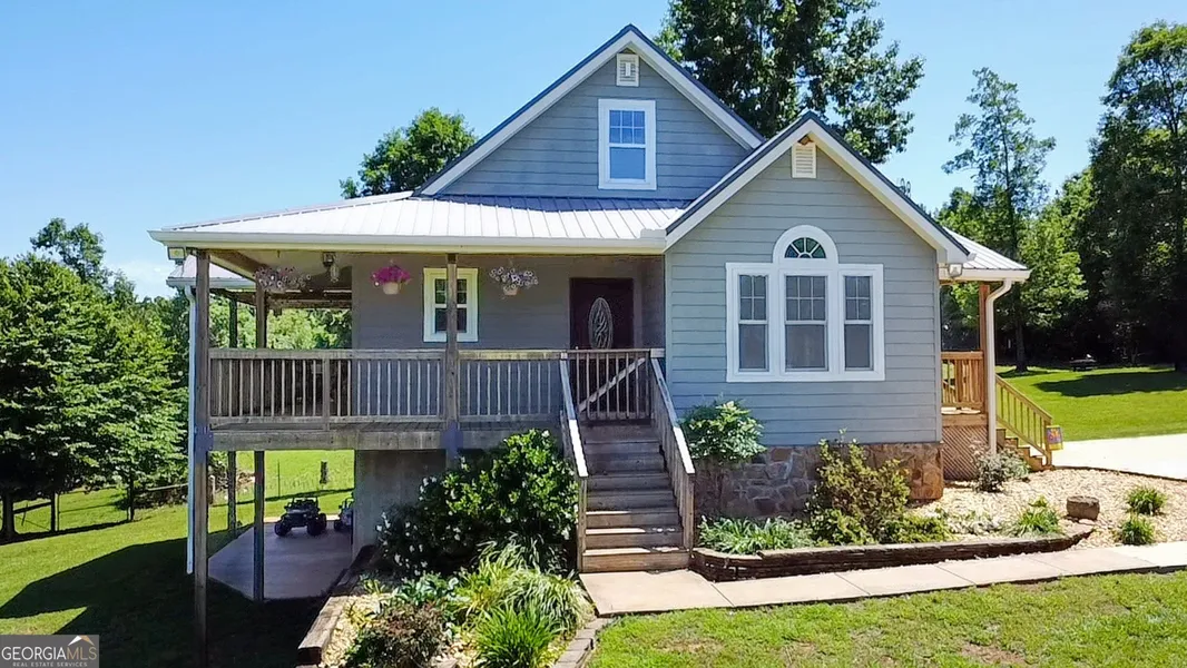 TWO HOMES ON 10+ ACRES OF TRANQUILITY! Welcome to your dream homestead! This idyllic property features not just one, but TWO beautifully appointed homes set on over 10 pristine, fully fenced acres. The main residence is a charming Craftsman-style home offering 3 bedrooms and 3 full baths. With four separate pastures and two tranquil creeks, this property is ideal for farming, gardening, or raising livestock- there's space for it all! Enjoy the peaceful surroundings from the wraparound porch, or relax on the additional covered patio perfect for outdoor dining and entertaining. Inside the main level offers a cozy family room that flows seamlessly into the spacious kitchen complete with stainless appliances, solid surface countertops, and breakfast bar island. The adjacent dining area opens to the covered porch making indoor/outdoor living a breeze. Also on the main level is a bedroom ...