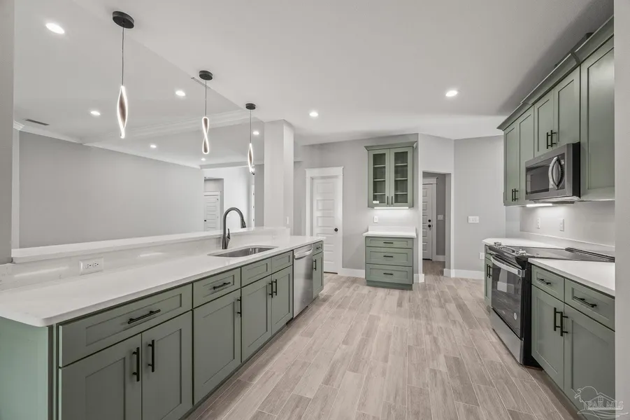 Discover this breathtaking, move-in ready new construction home in Northeast Pensacola, just minutes from local universities, hospitals, and vibrant shopping destinations! This 5-bedroom, 3-bathroom masterpiece spans 3,017 square feet, including a spacious upstairs bonus room. From the very moment you enter, you will be captivated by the open floor plan, high ceilings, and an abundance of natural light that fills every corner with warmth and life. The heart of this home is a luxurious kitchen adorned with elegant quartz countertops and sleek under-cabinet lighting—perfect for hosting memorable dinners or simply enjoying everyday moments. Just off the kitchen, a spacious living area opens to a covered patio, inviting you to savor your mornings with coffee or unwind in the evening’s tranquility. The primary suite offers a private sanctuary, complete with its own door to the patio, leading ...