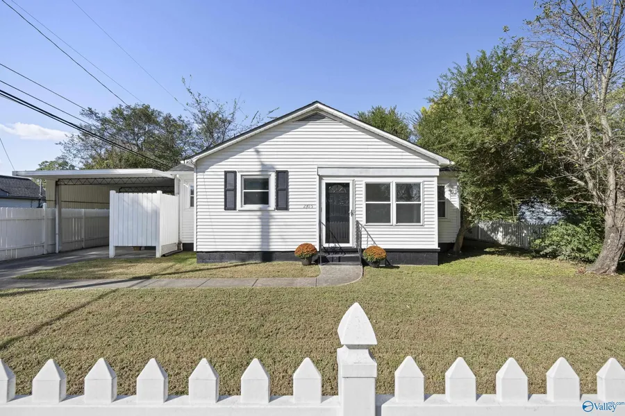 Charming cottage centrally located to 5 points and downtown Huntsville with easy access to I-565. Bright sunroom greets you in this 2bd/1 bath home that includes new interior paint, updated bathroom, original hardwoods throughout ready to be exposed, new roof 2023, vinyl windows, large laundry, gas fireplace, and fenced in backyard. Washer/Dryer, refrigerator, and outside shed to convey.