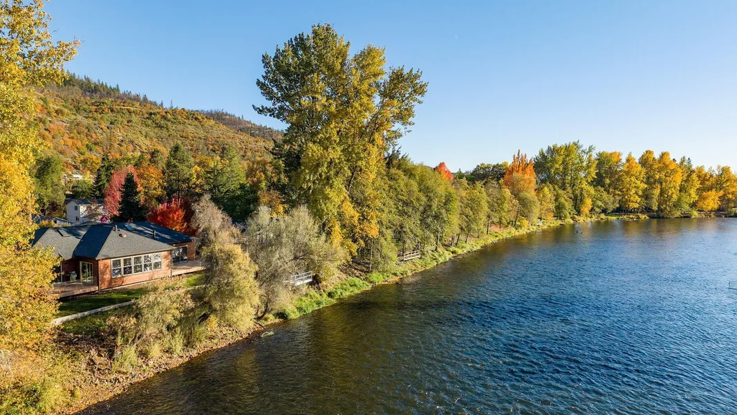 Custom built home on 1.29 acres offers gorgeous Rogue River frontage, a spacious single level layout, huge kitchen, 2 primary suites, walk-in cold storage, beautiful grounds, fenced garden, irrigation and ample room for an RV or boat. The home was thoughtfully designed and extensively upgraded. The spacious kitchen includes a large island, natural gas cook top, Jen-Air and GE appliances, double ovens and abundant cabinet space. The main primary suite overlooks the river, has its own private Trex deck, a large ensuite with heated tile floors, walk-in tile shower, soaking tub and a walk-in closet. The floor plan also includes a bonus room overlooking the river and a huge laundry room with tons of storage. Extras include a central vac, solid core doors, high-end windows with lifetime guarantee, never-paint Hardi siding, dual fuel furnace, a sauna, hot tub, ample storage, 2 gas fireplaces, i...