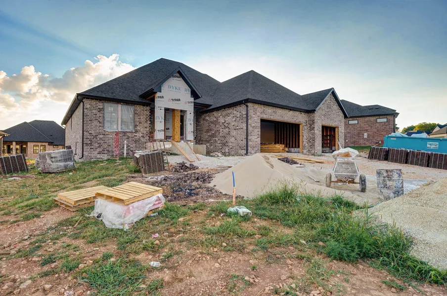 This is the ultimate home in Wildhorse! See our best selling Tiffany plan, but with a bonus upstairs master suite/ extra living area added on top! This home features a beautiful exterior off all brick, and 5 exterior lights with full sod and irrigation yard. As you walk in you will enjoy 11 ft tall ceilings in a 20x20 living area! Your front bedroom/ office has 11 ft ceilings as well! Your living area leads right into your open concept kitchen and dining area. Kitchen features quartz counertops, custom cabinets, all GE appliances, a wood custom hood, and moen faucet!! Your dining area is massive with larger windows to match the living area that has millwork touches and large glass sliders onto your back porch that features brick arches and a large vault porch ceiling! Coming off the kitchen leads to your master suite with a 16x16 bedroom and into a heated floor tile bathroom with double ...