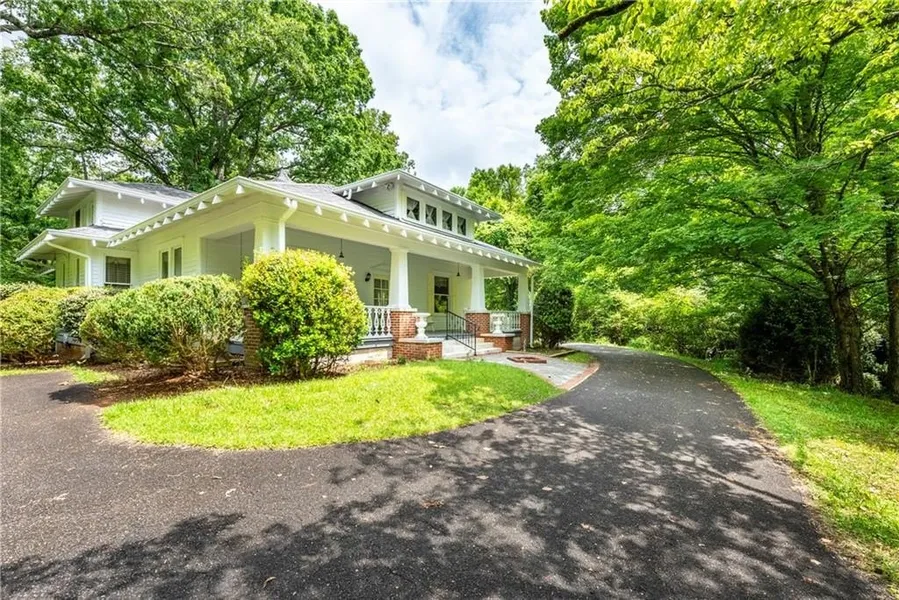 Perched atop a hill in the heart of The Historic Village of Tate, this one-of-a-kind early 1900s Craftsman-style home offers timeless charm and complete privacy on 8.3 sprawling acres. Marble slab patios and striking white marble steps welcome you into this distinctive residence. A full-length front porch provides the perfect setting to relax and enjoy peaceful summer evenings. The Roof was just installed this year! Inside, the home exudes character—from the family room featuring a wood burning insert flanked by glass-front bookcases to the formal dining room adorned with white columns, a wall of windows, and a cozy window seat. The kitchen is both stylish and functional with a marble-topped island, crisp white cabinetry, and a sunlit breakfast room with a beautiful built-in china cabinet all overlooking the lush backyard landscaping. Wide hallways lead to generously sized bedrooms, a floored attic offer ample storage. The winding driveway ascends the front hill and wraps around to the back of the home where you will find a detached 2-car garage, maintaining the home’s original charm. A small workshop is also located on the property, completing this rare and elegant estate in The Historic Village of Tate.