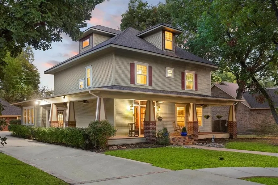 Stunning 1906 American Foursquare with Craftsman and Prairie influences, fully renovated while preserving its historic charm. Features 4 bedrooms, 4 bathrooms, chef’s kitchen with stainless gas cooktop and granite counters, and two living areas with fireplaces. 3rd-floor suite with private bath ideal for guests or media room. Enjoy an inground pool & spa with outdoor pool bar, hand-scraped wood floors, custom woodwork, built-ins, detached garage, and a 71-ft wraparound porch—perfect for relaxing or entertaining.