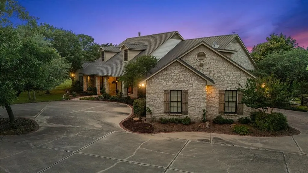 Designed for those who value privacy, space, and a setting that feels like an escape, 840 Winding Trail sits on a scenic 2.63-acre riverfront lot in the prestigious Three 17 River Oaks community. Mature trees and the gently flowing Bosque River create a peaceful, secluded backdrop—yet you're only minutes from dining, shopping, and everyday essentials. This is more than a home; it’s a place to slow down, entertain freely, and enjoy the kind of lifestyle that rarely comes available in Crawford. Inside, over 4,000 square feet of thoughtfully designed living space invites you to relax and entertain with ease. From the grand living room with its soaring fireplace to the sunlit dining spaces and flowing layout, this home was built for both connection and quiet moments. The kitchen’s semi-open configuration allows for effortless entertaining while keeping the culinary space discreetly tucked away. Brick flooring and crown molding add a sense of timeless elegance, while the expansive windows frame the scenic backyard views. The primary suite is its own private sanctuary, complete with fireplace, private access to the patio and hot tub, and a spa-like bath designed to start and end your days in comfort. A separate office or flex space, guest accommodations with private baths, and an upstairs game room or 5th bedroom offer flexibility for how you live. Step outside and the lifestyle expands—an elevated patio overlooks your personal resort, complete with saltwater pool, stone waterfall, slide, and diving board. A 32' x 44' insulated shop with power supports hobbies, storage, or business needs. For those seeking distinction, space, and a true sense of arrival, 840 Winding Trail is the property that delivers. Located in one of Central Texas' most coveted luxury communities, this is a rare opportunity to own a private estate that offers not just a beautiful home—but a lifestyle defined by comfort, elegance, and a lasting connection to nature.