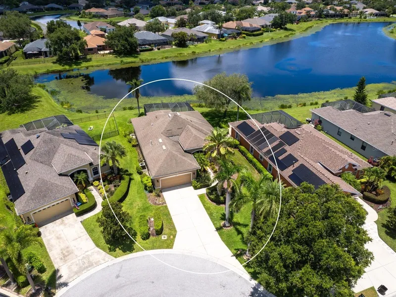 Welcome to Greyhawk Landing - Where Lifestyle and Location Meet... Located in a gated community, and on a cul-de-sac, you'll find this well-designed POOL home. Featuring Lake views, vaulted ceilings and plenty of natural light throughout the over 2000 sq ft of living space. The layout provides 3 bedrooms, 2 bathrooms, formal living, formal dining, a breakfast nook with views of the lake, a family room with access to the screened in POOL area and an indoor utility room complete with a wash sink wine refrigerator and extra cabinet space. The kitchen includes a gas cooktop, stainless appliances, tile backsplash, walk-in pantry, tall cabinets and breakfast bar open to the family room. The primary bedroom offers access to the outdoor living space, walkin closets, a large en suite bath with soaking tub, walk-in shower, dual sinks, and a vanity space. Greyhawk Landing has low HOA fees ($75/year) and a wide range of amenities: two lagoon-style pools, fitness center, tennis and pickleball courts, basketball courts, playgrounds, fishing, sports fields, and over five miles of walking/biking trails. Located near Bradenton's top beaches, golf courses, shopping, dining, and recreation, this is a great opportunity to live in a sought-after location. Schedule your private showing today!