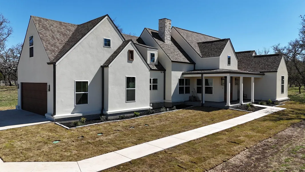 Blackbuck has 5-20 acre lots, so there is plenty of space and privacy between you and your neighbor. The property is covered in oak trees. The front porch faces the sunset and wide open space across the street. Plenty of open field options for a pool, a garden, or a future guest cottage. The home was carefully designed with an old world, historic home in mind - reclaimed wood look flooring throughout, real marble countertops and sinks, unlacquered brass hardware, antique light fixtures, antique doors, vaulted tongue and groove ceilings, historic window and door trim, and Victorian era brass light switches. The house is full of windows, letting in natural light in every space. There is a butler’s pantry right off the kitchen with counter to ceiling shelving, an ice maker, and coffee bar area. 48” European gas range with double ovens. Large formal entry with plenty of space for a piano or extra seating. Centrally located between Lampasas and Burnet.