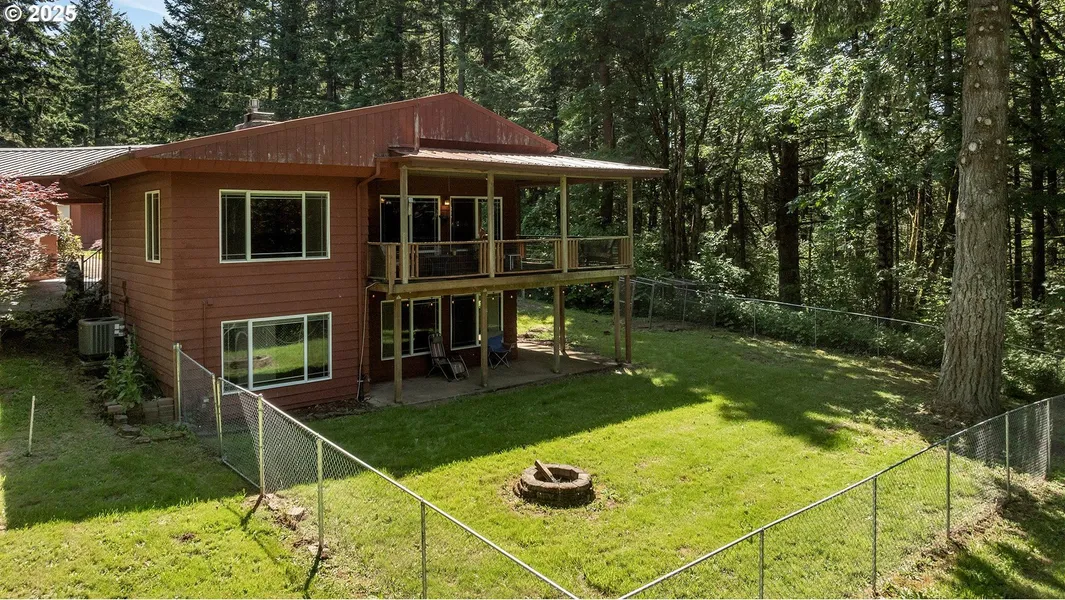 Incredible opportunity to own a tranquil, private, wooded, and grassy retreat on 5 acres with 3 bedroom, 2 bath, 2,076 square feet with a 3-acre buildable lot. Minutes from Gresham, Happy Valley, and Damascus. Daylight basement home on 1.9 acres nestled among towering evergreens. Large windows allow for lots of natural light. Main floor: Living room with three-sided floor to ceiling rock fireplace with slate hearth situated between living room and kitchen. One bedroom and full bath. Kitchen features 12’ ceilings, stainless steel appliances, granite and large island. Slider opens to large 50’ covered wrap-around deck for year-round use and beautiful views. Daylight basement features large family room with floor to ceiling brick fireplace with gas insert. 2 bedrooms, bathroom, large utility room. Slider off family room leads to wrap-around patio and access to fenced yard. Newer updates inc...