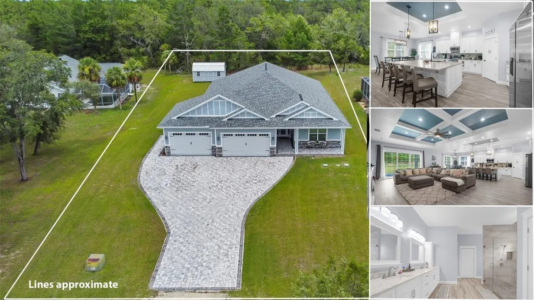 Gorgeous Craftsman Style home with Hardiplank siding and stone accents! Complemented with an inviting front porch to greet your guests with brick pavers and a matching brick paver driveway that is 4-vehicles wide -- so much extra parking space!! Mathicng brick pavers on the VERY LARGE back covered lanai!! Enjoy your outdoors as there is so much room out there... you can have an outdoor living room and an outdoor dining room!!