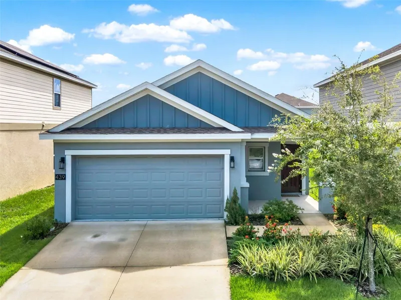 Welcome to 439 Cool Summer Lane in Davenport—a beautifully upgraded, nearly new home that blends comfort, convenience, and smart living. Only 3 years old, this open-concept design features a spacious kitchen with an oversized island, quartz countertops, updated backsplash, espresso-colored cabinets, GE stainless steel appliances, and ceramic tile floors throughout the main living areas. The family room and dining area flow seamlessly from the kitchen, creating an ideal space for entertaining. All bedrooms are carpeted and include ceiling fans and blinds, while the primary suite boasts a large walk-in closet with new built-in shelves, dual vanities, and a brand-new shower.