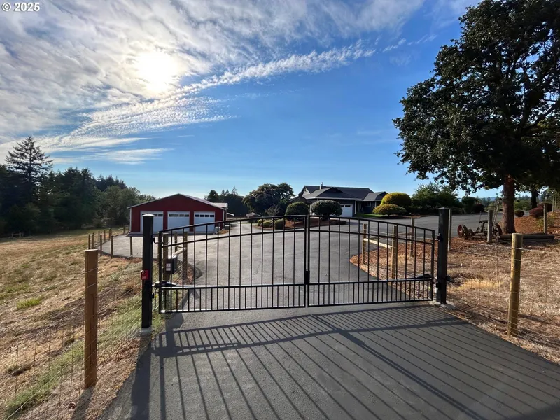 Experience the perfect blend of country tranquility and modern luxury in this 4-bed, 3-bath daylight ranch on 9.3 fully fenced, breathtakingly beautiful and usable acreage. Gated entry leads to a private estate featuring crossed-fenced pastures, a creek, and a serene oak grove. This property is yearning for animals, complete with a two stall barn, a hay loft and a chicken coop. In addition to a (built to the highest standards) 62x84 shop like no other you have ever seen. Equipped with a re-bar enforced concrete floor, gas onsite, incredible amounts of power including 30 and 50 amp plugs and designed as a pull through for large vehicles. Too many important details to mention here, really a must see. Inside the home you'll find a chef’s kitchen boasting high-end appliances, custom cabinetry, engineered hardwoods, granite countertops and sweeping mountain and valley views. The open-concept ...