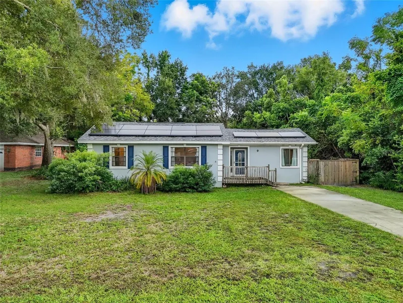 Welcome to 9 Granada Rd, a charming and tranquil home, nestled in nature - that could be yours! DETACHED GARAGE, 2024 AC UNIT AND 2021 ROOF! Perfectly situated on a quarter-acre lot in the heart of the beautiful DeBary! This rare 4-bedroom layout offers plenty of space, natural lighting and a warm, inviting atmosphere. Step inside to find a bright, functional floor plan with plenty of space for the family to enjoy. The kitchen is beautifully done with Corian countertops, a stylish tile backsplash, stainless steel and dark appliances, with a nice view of the backyard- All appliances included! Relax on the front or back porch while enjoying the fully fenced yard, perfect for privacy, pets, and outdoor entertaining. The detached garage provides extra storage and doubles as a workshop. Major updates include a 2024 AC UNIT, 2021 year old roof and a green solar panel system to help keep energy...
