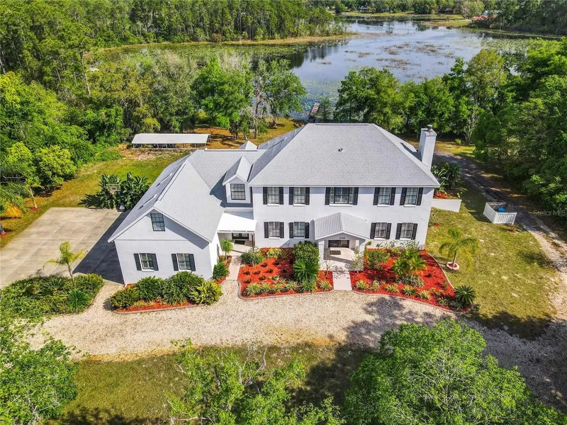 Under contract-accepting backup offers. Beautiful custom home with lake front and plenty of room to enjoy. The home features 5,330 sqft of living space, with 5 bedrooms, 3.5 baths, and multiple living and entertainment areas that accommodate everyone in the family, not to mention it is the perfect home for multi-generational families. A walkout basement with its own entry and parking area is ideally a 1,700sq ft apartment or mother-in-law suite. An impressive pool amidst beautiful greenery, offering a tranquil retreat for outdoor enjoyment and plenty of outdoor spaces that include a 66' x 12' outdoor deck with great views of the Lake, a screened-in patio, and over 153' of lakefront make this property your own private retreat. An attached extended 4-car garage (43' x 22' with 14' ceilings) and a separate extended 2-car garage (20' x 30') provide ample space for vehicles and storage not to mention a 36' x 14' carport perfect for an RV or boat parking. Located in the quiet town of Deltona, Florida where privacy is paramount, with a location that offers seclusion without sacrificing accessibility. The strategic location places you within a 30-minute drive to Orlando and the famed beaches of Daytona Beach and New Smyrna Beach, while Universal Studios and Disney World are a mere 45 minutes away. What truly sets this property apart is its unique location on the serene Lake Mitnik, which not only offers idyllic views and privacy it also serves as a gateway to Big Lake, both ideal for fishing, boating, and watersports. and outdoor gardens throughout the property. Embrace the fusion of luxury and nature with this impressive Deltona estate, where every day feels like a vacation. Your oasis awaits at 226 Mitnik Drive