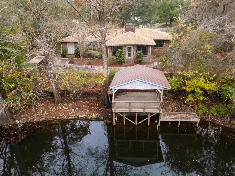Discover serene riverfront living on the beautiful Withlacoochee River! This charming 2-bedroom, 2-bath home offers an inviting open floor plan with a cozy fireplace and a spacious Florida room perfect for year-round enjoyment. The large utility room provides abundant storage, making organization a breeze. Step outside to your large covered dock with electric and water, ideal for boating, fishing, or simply relaxing by the water. Enjoy evenings around the fire pit. Recent updates include a new roof (2022) and new AC (2025) for peace of mind. The property also features a carport designed for RV parking, making it perfect for adventurers or visiting guests.