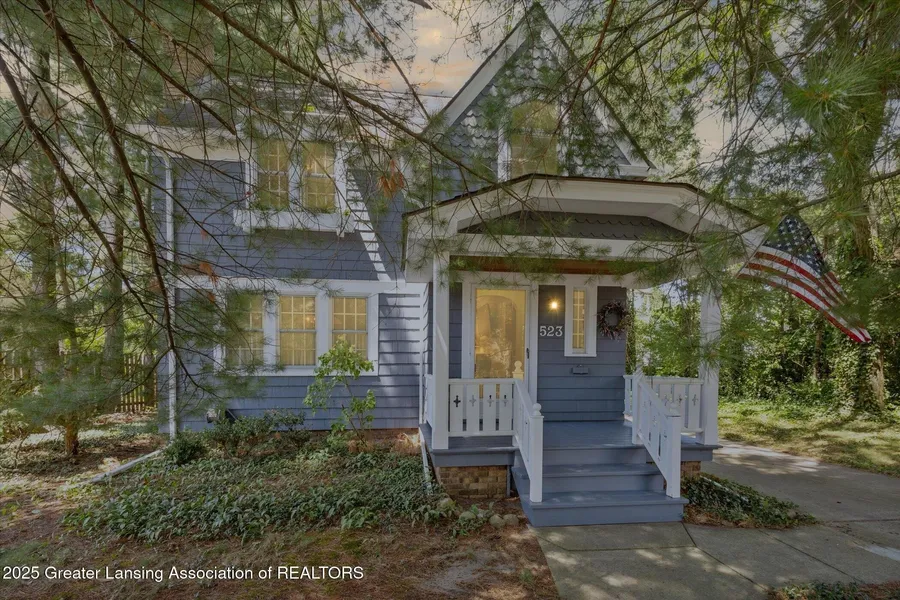 ***HIGHEST & BEST DUE MONDAY 8/11/25 9:00 AM***Just a stone's throw from the vibrant East Lansing downtown, this 4-bedroom, 2.5-bath home offers the perfect blend of character, privacy, and functionality. Nestled among mature trees on a peaceful lot, the setting feels like a quiet retreatâ€â€yet you're within walking distance of coffee shops, parks, boutiques, and campus culture. Step inside to discover original details paired with thoughtful updates, including a gas fireplace that anchors the cozy living room, a formal dining room perfect for entertaining, and a screened-in, covered back deck ideal for morning coffee or late-night chats. There's also a sunny open-air deck for grilling or gathering, and a private balcony off the primary bedroom for your own serene escape. The second level hosts a good sized home office, two generously sized bedrooms and a full bath with heated floor...